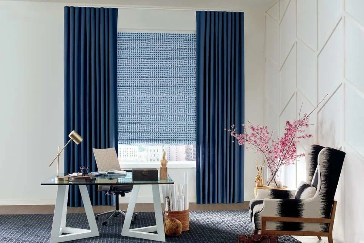 What makes drapes a bold style of window treatments is not only their size, which often extends far beyond the window frame itself but also the fabrics from which it is constructed. Fabric is a beautiful tool in interior design that can enrapture the viewer with its prints or patterns and its movement that gives life to this bold style for window treatments. In the Hunter Douglas collection, check out the Design Studio™ Drapery collection options for exclusive designer fabrics from Rebecca Atwood, Marcie Bronkar, and Seema Krish for high-end style and quality. Drapery also pairs well with interior coverings like shutters, cellular shades, roller shades, and blinds to create multi-tiered window fashions with a bold yet well-rounded sense of style.