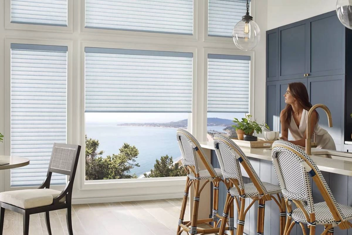 The best shades for home offices allow you to direct your full attention to your work, rather than your surroundings. Sonnette® Roller Shades cushion your office from outside sounds, creating a quiet space that promotes focus. They also are available with PowerView® Automation, a cutting-edge system that allows you to control your window treatments with a simple remote or with an app. You can even schedule an automation so your window treatments close to help you focus during the workday and open at the end of the day, reinforcing your work schedule without a second thought.